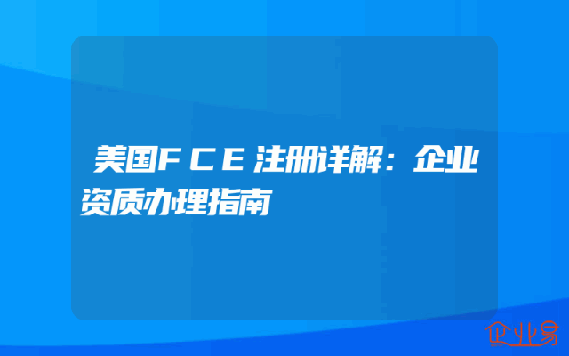 - 美国FCE注册详解:企业资质办理指南