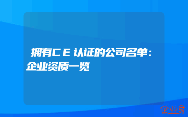 - 拥有CE认证的公司名单:企业资质一览