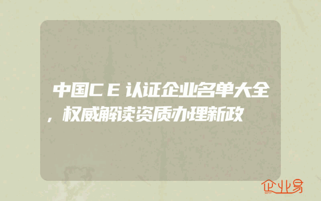 - 中国CE认证企业名单大全,权威解读资质办理新政