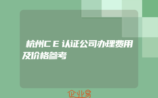 - 杭州CE认证公司办理费用及价格参考