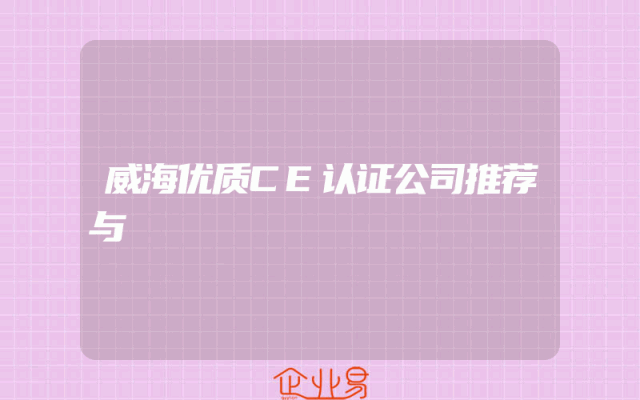 - 威海优质CE认证公司推荐与解析一、引言随着国际贸易的不断发展,企业在出口产品时往往需要满足各种国际标准和认证要求。CE认证是欧洲市场准入的重要条件之一,对于想要拓展欧洲市场的企业来说至关重要。在威海地区,有不少专业的CE认证公司,本文旨在推