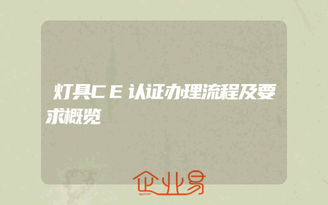 - 灯具CE认证办理流程及要求概览