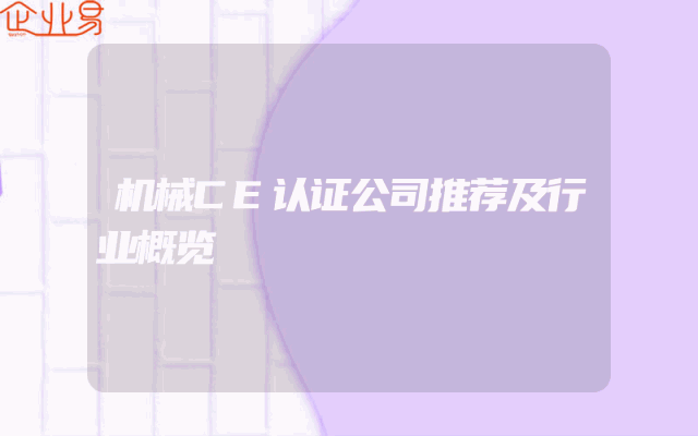 - 机械CE认证公司推荐及行业概览一、机械CE认证的重要性在全球化背景下,机械产品的出口贸易持续增长,而欧洲市场是众多企业的目标之一。为了进入欧洲市场,机械产品必须通过CE认证,这是产品进入欧盟市场的通行证。因此,选择一家专业的机械CE