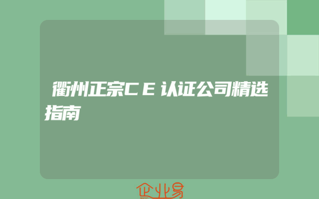 - 衢州正宗CE认证公司精选指南一、CE认证的重要性在当今全球化的市场中,产品出口到欧洲经济区是许多企业的目标。而CE认证作为产品进入欧洲市场的通行证,其重要性不言而喻。衢州的企业若欲将产品销往欧洲,必须了解CE认证的相关知识和流程。二、CE认