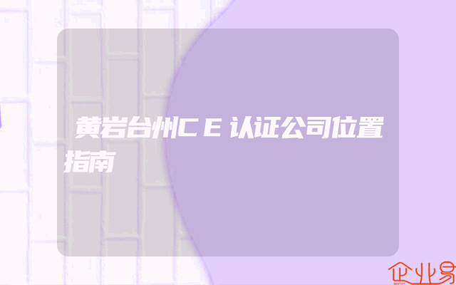 - 黄岩台州CE认证公司位置指南一、了解黄岩台州CE认证公司的重要性在当今的商业环境中,越来越多的企业意识到获得国际认证的重要性,尤其是CE认证。CE认证是欧洲联盟对产品的安全性能和质量标准的重要认证,对于出口企业来说具有极大的意义。黄岩台州地