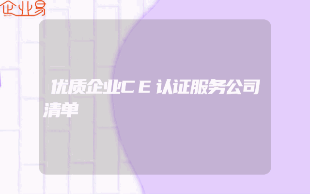 - 优质企业CE认证服务公司清单一、引言随着市场竞争的日益激烈,企业对于服务质量和效率的要求也越来越高。在众多的服务领域中,CE认证服务作为企业发展的重要一环,受到了广泛关注。本文将为您呈现一份优质企业CE认证服务公司清单,以帮助企业更加便捷地