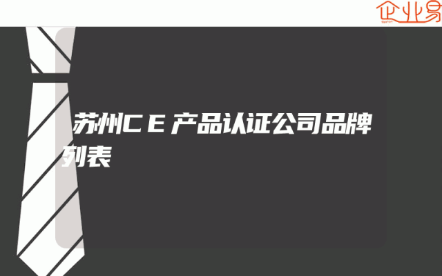 - 苏州CE产品认证公司品牌列表一、引言随着国际贸易的不断发展,产品认证成为了企业进入欧洲市场的必备条件之一。作为中国企业走向世界的门户,苏州的CE产品认证公司在行业内扮演着重要的角色。本文将为您介绍苏州地区的CE产品认证公司品牌列表,以便企业