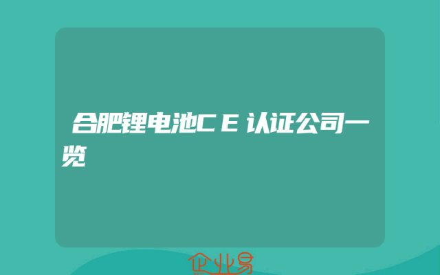 - 合肥锂电池CE认证公司一览一、引言随着锂电池市场的迅速发展,CE认证在锂电池产业中的地位愈发重要。合肥作为锂电池产业的重要基地之一,拥有众多专业的锂电池CE认证公司。本文将对这些公司进行一揽子介绍,帮助读者更好地了解合肥锂电池CE认证行业的