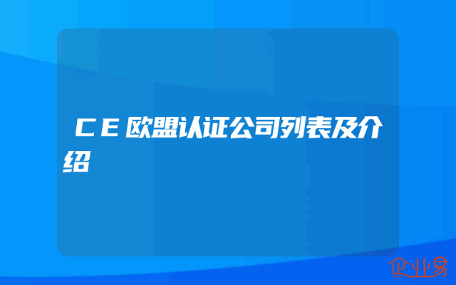 - 杭州CE认证公司列表及简介