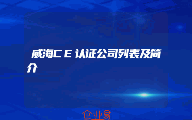 - 威海CE认证公司列表及简介