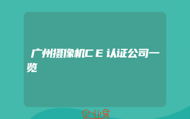 - 广州摄像机CE认证公司一览