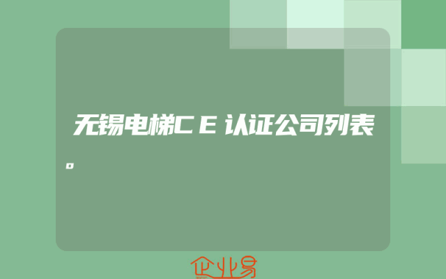 - 无锡电梯CE认证公司列表。