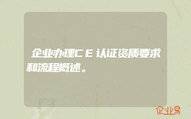 - 企业办理CE认证资质要求和流程概述。