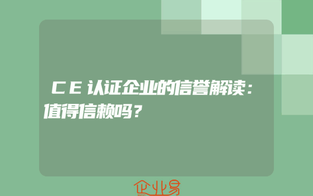 - CE认证企业的信誉解读:值得信赖吗?