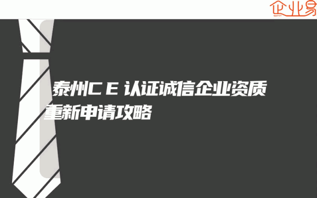 - 泰州CE认证诚信企业资质重新申请攻略