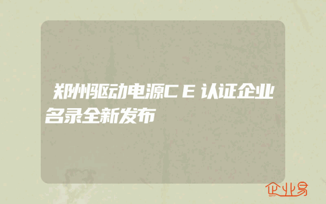 - 郑州驱动电源CE认证企业名录全新发布一、引言随着全球贸易的不断发展,CE认证已成为电子产品出口欧洲的必备证书。郑州作为驱动电源产业的重要基地,其企业在CE认证方面的进展备受关注。本文旨在发布郑州驱动电源CE认证企业的最新名录,以便业