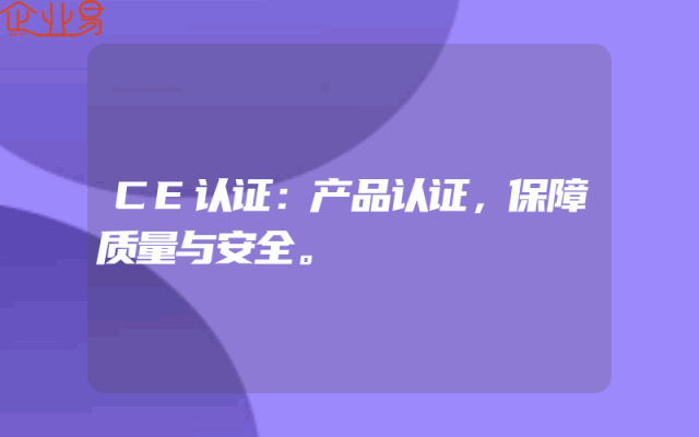 - CE认证:产品认证,保障质量与安全。
