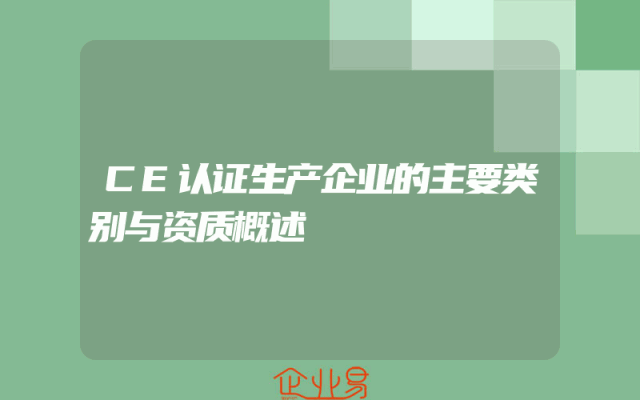 - CE认证生产企业的主要类别与资质概述