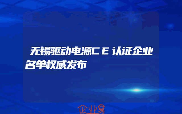 - 无锡驱动电源CE认证企业名单权威发布