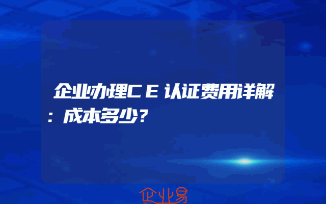 - 企业办理CE认证费用详解:成本多少?