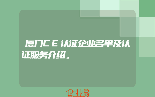 - 厦门CE认证企业名单及认证服务介绍。