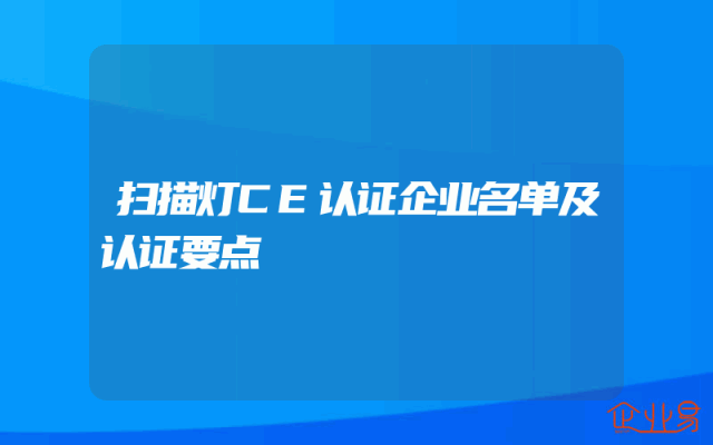 - 扫描灯CE认证企业名单及认证要点解析一、扫描灯CE认证企业名单随着欧盟市场对于电子产品的监管日益严格,越来越多的企业开始重视并申请CE认证。针对扫描灯产品,获得CE认证的企业名单不断壮大。目前,国内主要的扫描灯生产企业,如XX光电、XX照明