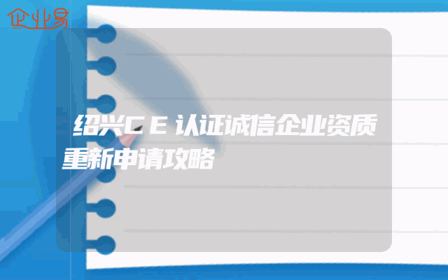 - 绍兴CE认证诚信企业资质重新申请攻略