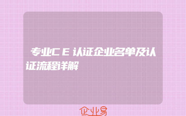 - 专业CE认证企业名单及认证流程详解一、CE认证企业名单概览在欧洲市场,众多中国企业通过CE认证,获得了进军欧盟市场的通行证。这些企业涉及多个行业领域,包括但不限于电子信息、机械制造、医疗器械等。其中,华为、中兴、海尔等知名企业的产品