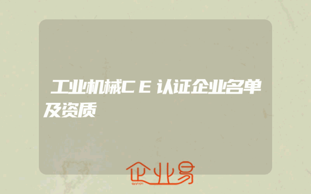 - 工业机械CE认证企业名单及资质解析一、CE认证概述随着国际贸易的不断发展,工业机械产品的出口面临着众多标准和认证的要求。其中,欧洲联盟实施的CE认证(ConformitéEuropéenne)是工业机械产品进入欧洲市场的必要认证之一。此认证