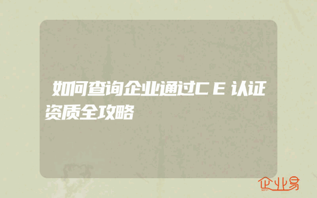 - 企业通过CE认证资质全攻略一、了解CE认证概述CE认证,即欧盟市场准入认证,对于希望在欧洲市场开展业务的企业而言至关重要。此认证不仅证明了产品符合欧盟的相关法规和标准,还意味着企业遵守了欧盟市场准入的基本安全与健康要求。想要查询企业