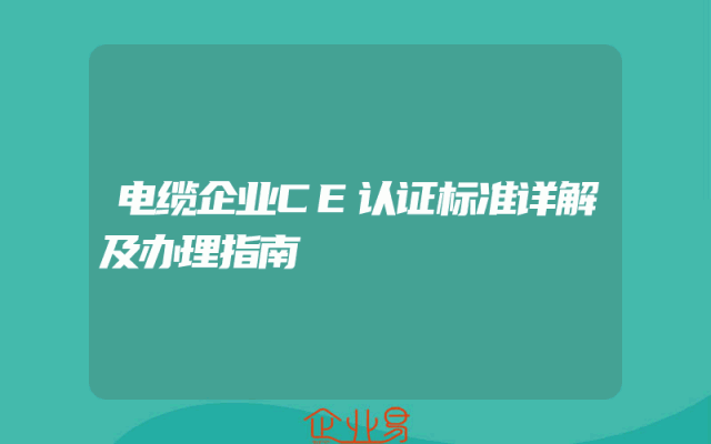 - 电缆企业CE认证标准详解及办理指南在现代电缆制造业中,产品的质量与安全性是各大企业的生命线。为了确保产品的质量和符合欧盟市场的要求,许多电缆企业会选择申请CE认证。本文将详细解读电缆企业的CE认证标准