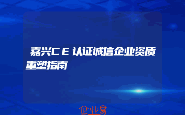 - 嘉兴CE认证诚信企业资质重塑指南