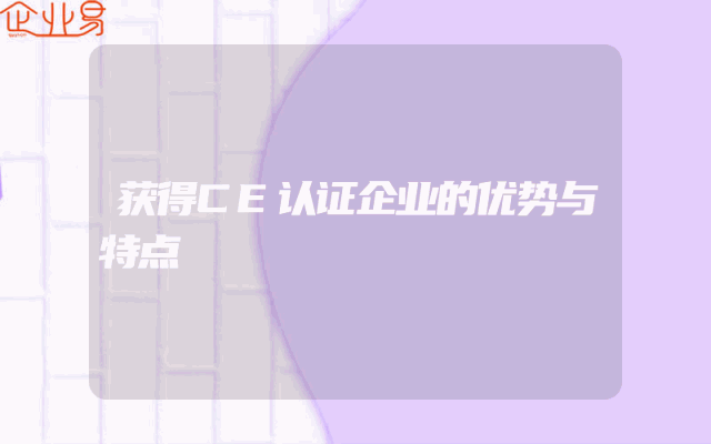 - 获得CE认证企业的优势与特点
