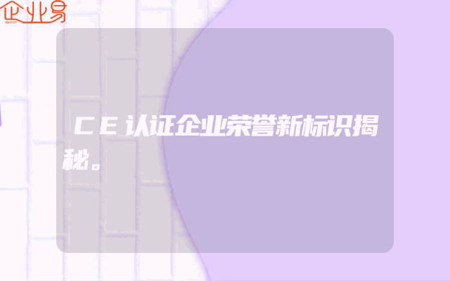 - CE认证企业荣誉新标识揭秘一、CE认证概述在当今经济全球化的大背景下,产品出口到欧洲市场,必须通过CE认证。这是一种安全认证标志,被认为是产品进入欧洲市场的通行证。随着欧盟法规的不断更新,CE认证企业荣誉新标识也应运而生,成为众多出