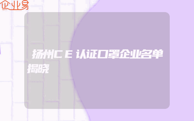 - 扬州CE认证口罩企业名单揭晓认证名单公布背景随着全球对防疫物资需求的日益增长,口罩等防护用品成为重要的生产物资。在这样的背景下,扬州市众多口罩生产企业积极响应市场需求,不断提升产品质量,通过了欧洲共同体认证(CE认证)。经过相关部门