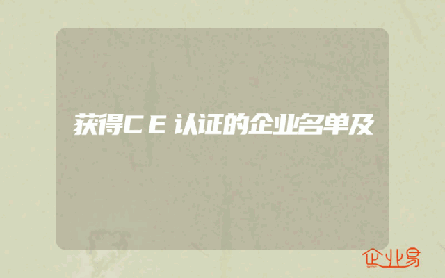- 获得CE认证的企业名单及解析一、CE认证概述CE认证,即欧洲共同体(EuropeanCommunity)认证,是一种安全认证标志,被视为制造商打开并进入欧洲市场的护照。获得CE认证意味着企业的产品符合欧盟相关法规的要求,可以在欧盟各
