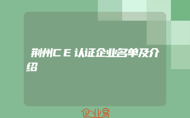 - 荆州CE认证企业名单及介绍一、CE认证概述CE认证是欧洲联盟(EU)成员国对产品安全的一种强制性认证,以确保产品符合欧盟法规与指令要求,自由流通于欧盟市场。荆州地区的企业在积极响应国家质量强国战略的同时,也积极投身于CE认证,以提高产品的国