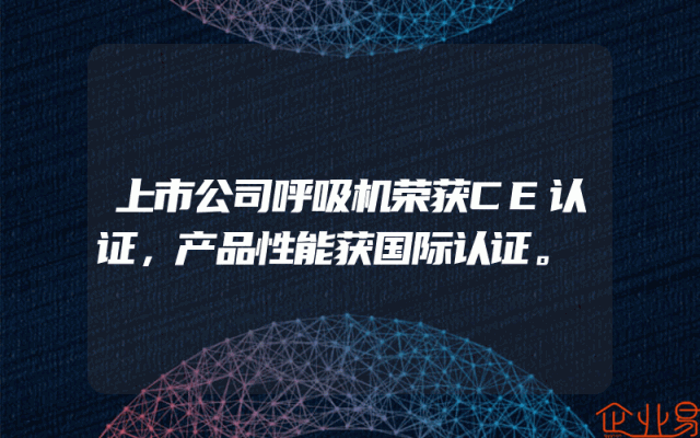 - 上市公司呼吸机荣获CE认证,产品性能获国际认证。
