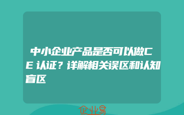 - 中小企业产品是否可以做CE认证?详解相关误区和认知盲区