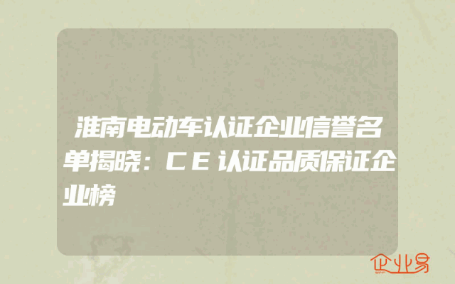 - 淮南电动车认证企业信誉名单揭晓:CE认证品质保证企业榜