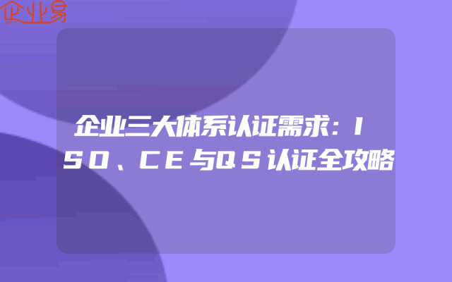 - 企业三大体系认证需求:ISO、CE与QS认证全攻略