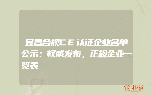 - 宜昌合规CE认证企业名单公示:权威发布,正规企业一览表