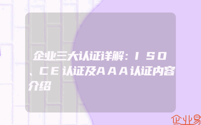 - 企业三大认证详解:ISO、CE认证及AAA认证内容介绍