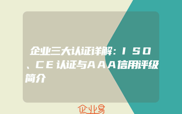 - 企业三大认证详解:ISO、CE认证与AAA信用评级简介