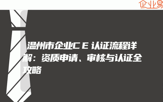 - 温州市企业CE认证流程详解:资质申请、审核与认证全攻略