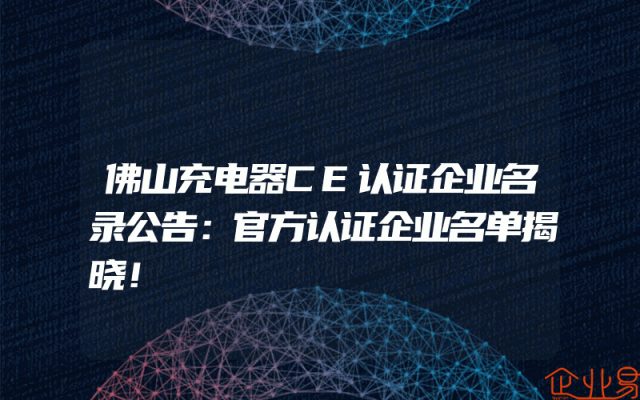 - 佛山充电器CE认证企业名录公告:官方认证企业名单揭晓!