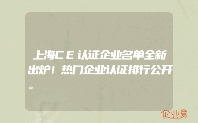 - 上海CE认证企业名单全新出炉!热门企业认证排行公开。