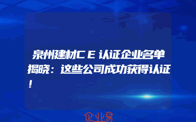 - 泉州建材CE认证企业名单揭晓:这些公司成功获得认证!
