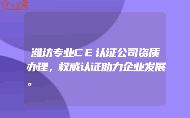 - 潍坊专业CE认证公司资质办理,权威认证助力企业发展。