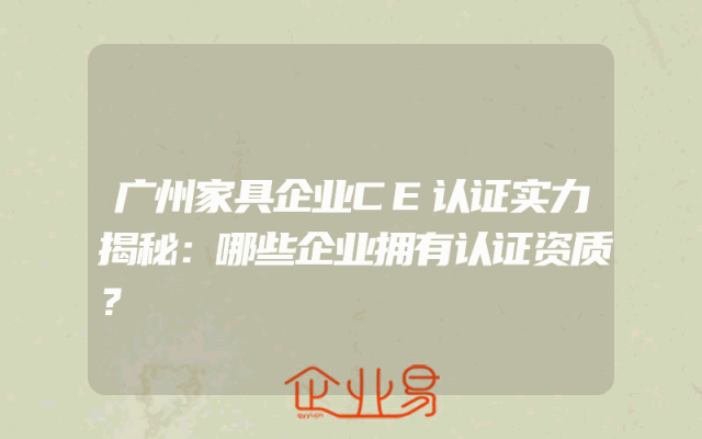 - 广州家具企业CE认证实力揭秘:哪些企业拥有认证资质?
